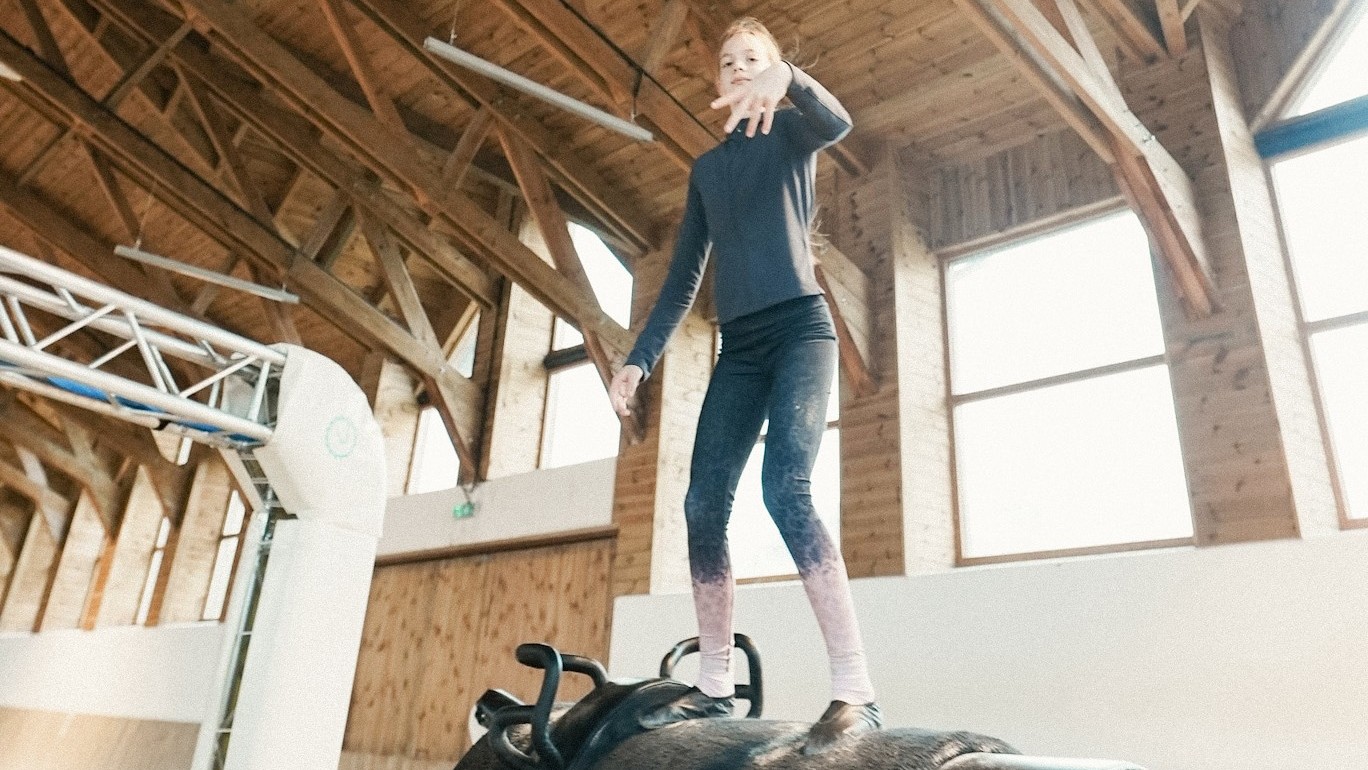 Oprócz jazd konnych w programie elementy woltyżerki. Woltyżerka to widowiskowy sport jeździecki, łączący jazdę konną, gimnastykę i akrobatykę. To nie tylko piękna dyscyplina sportowa, ale również doskonały trening dla jeźdźców – rozwija równowagę, koordynację, świadomość ciała i pewność siebie w siodle.