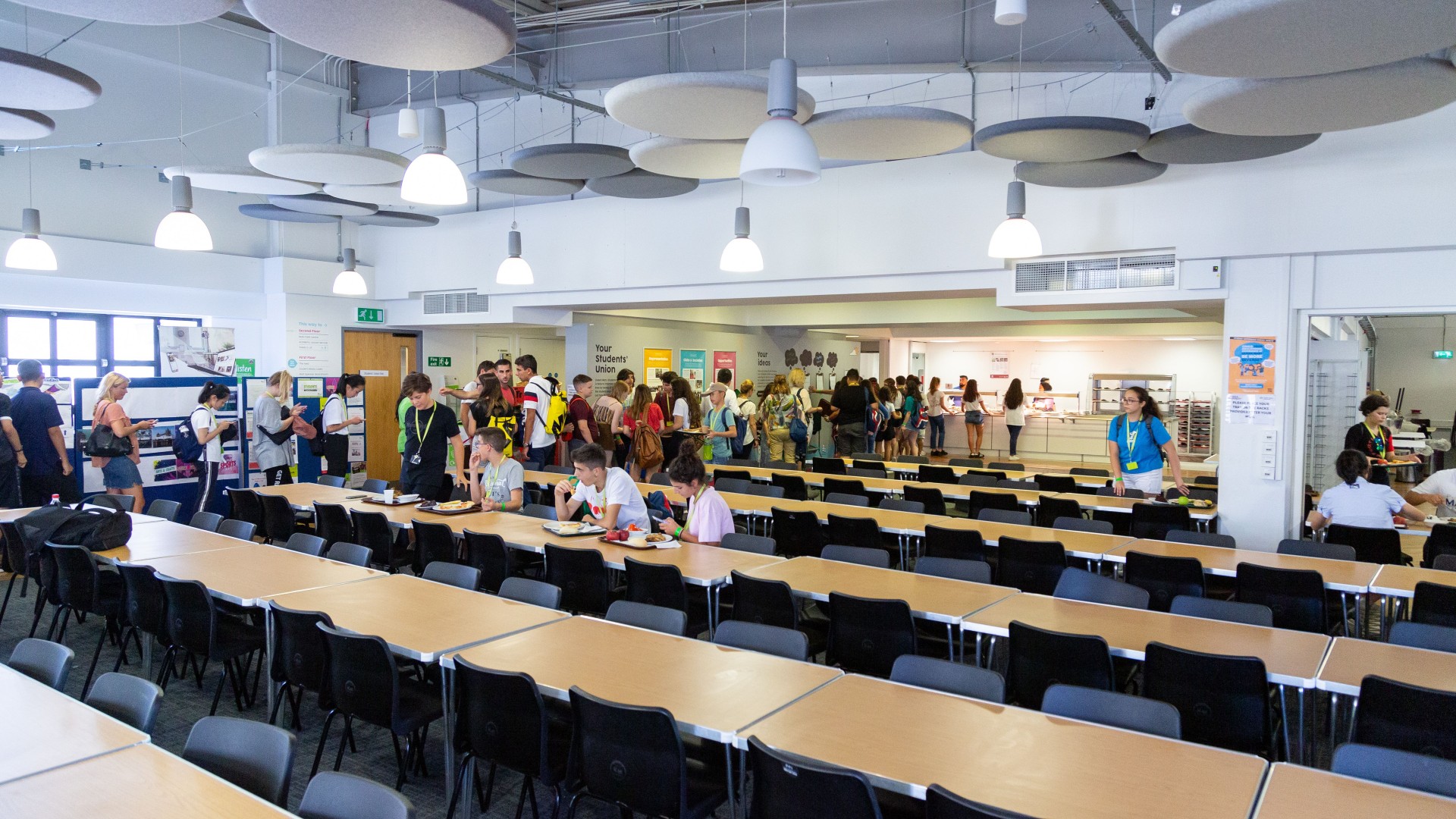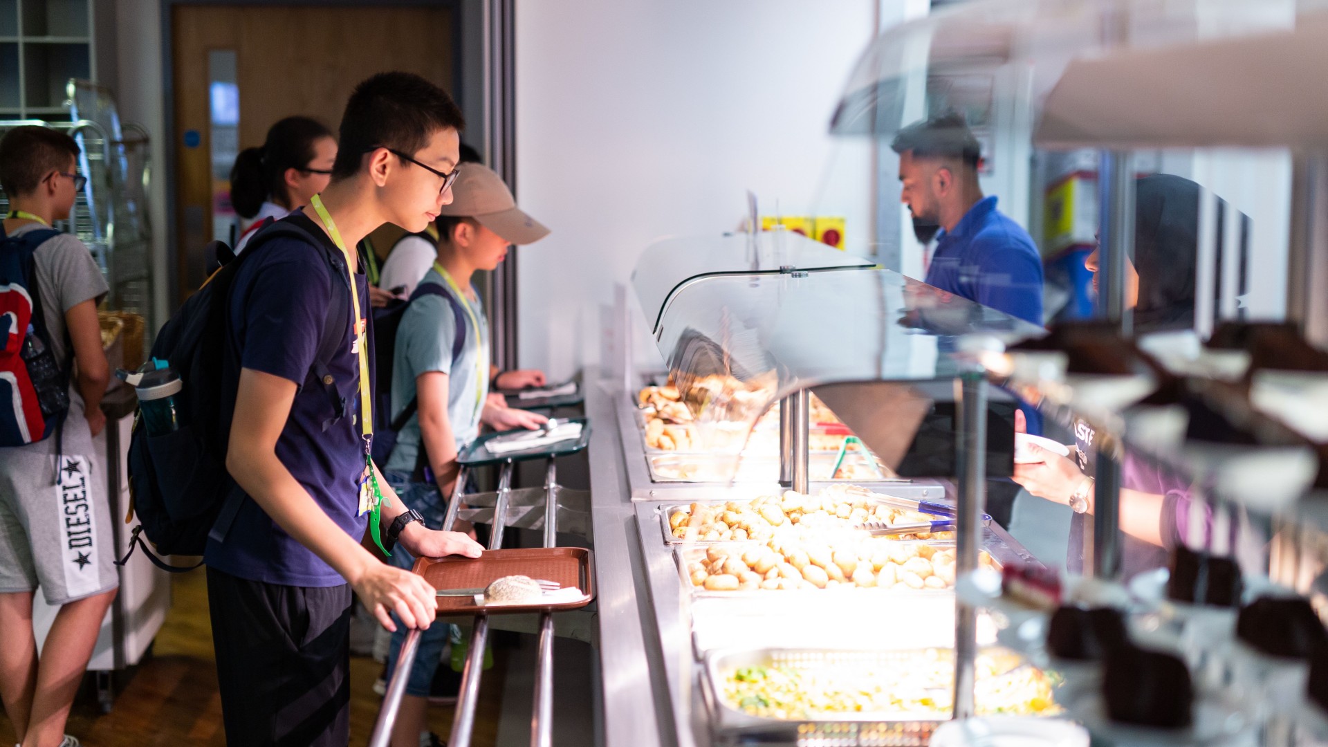 3 posiłki dziennie podawane w stołówce na kampusie: śniadanie, lunch, obiadokolacja. Lunch w formie suchego prowiantu wydawany na wycieczki całodniowe.